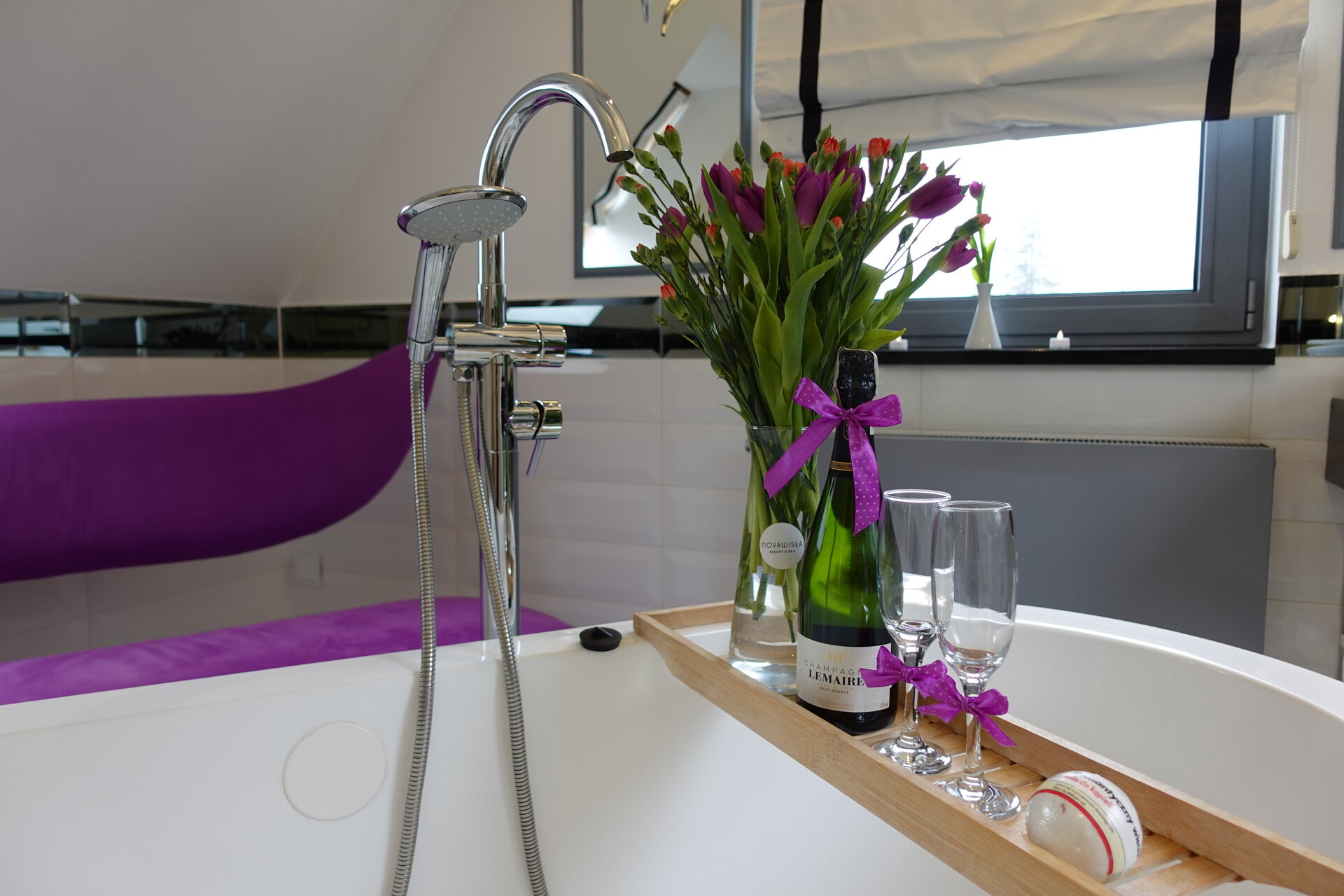 W przestronnej łazience znajduje się zarówno wanna wolnostojąca, jak i kabina prysznicowa, dzięki czemu po intensywnym dniu znajdziesz ulubiony sposób na odświeżenie - szybki prysznic, lub długa, kojąca kąpiel.
