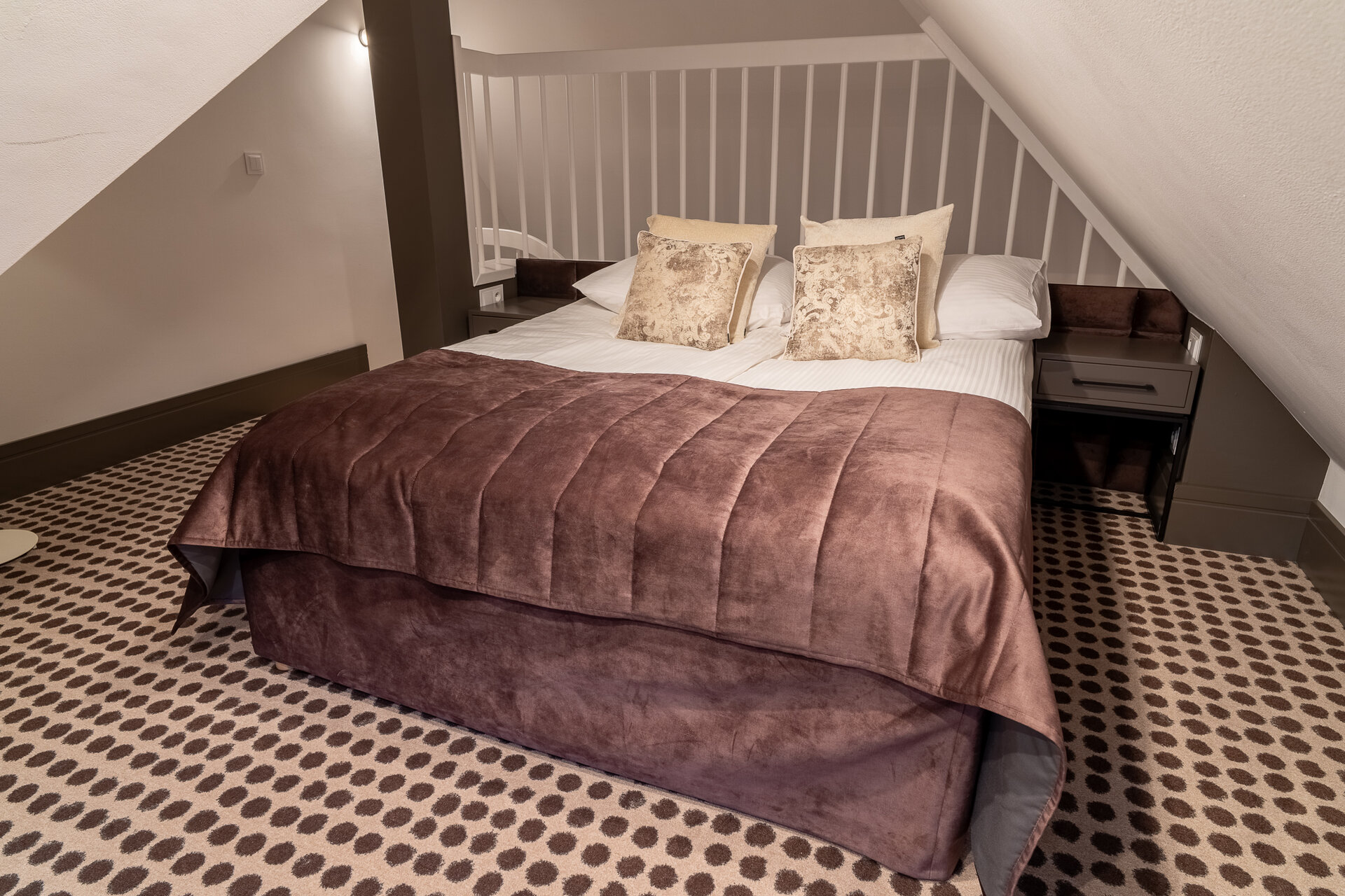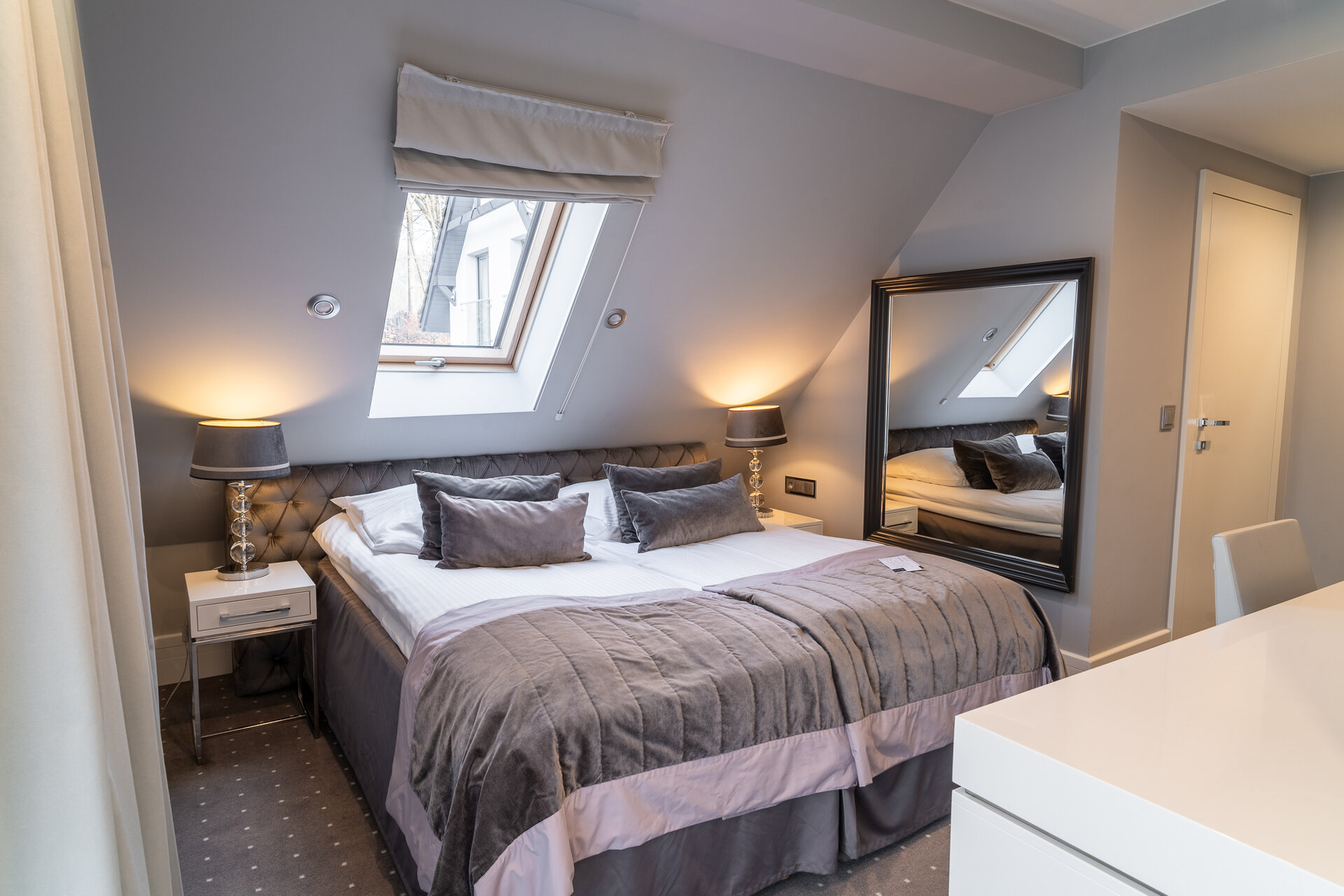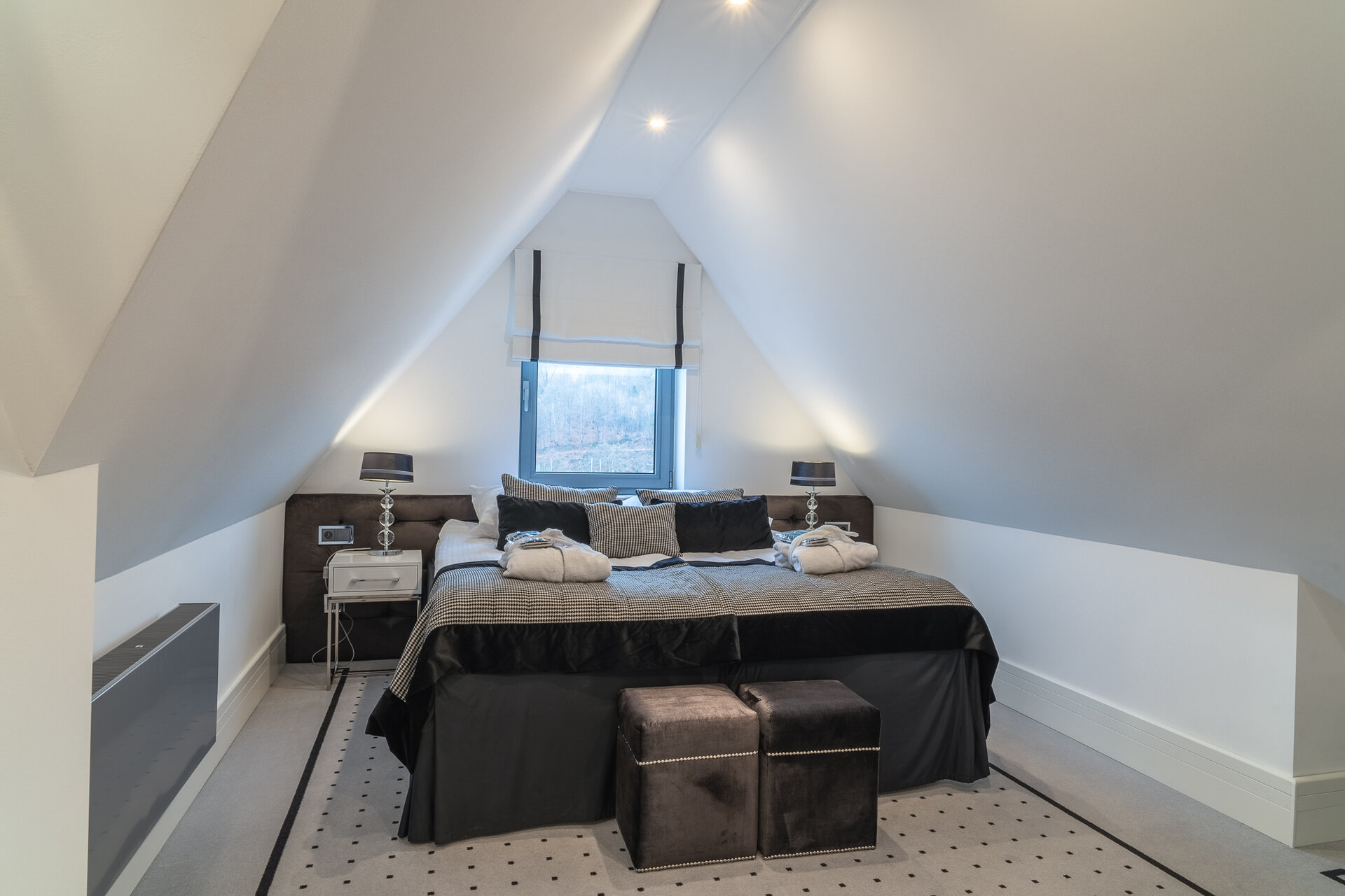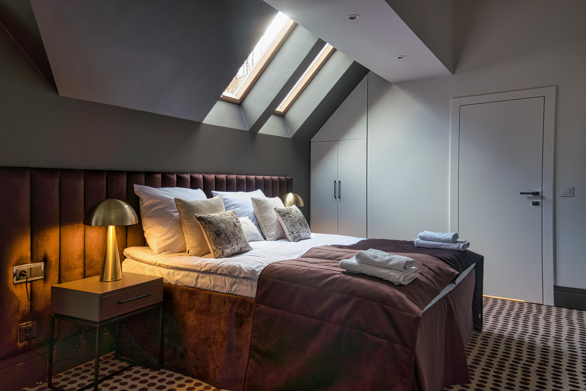 Item22, Link to Larger Image, łóżko z poduszkami i lampą w pokoju z świetlikami