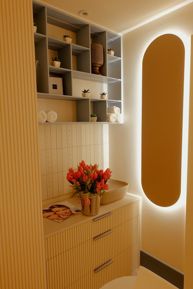 Item60, Link to Larger Image, łazienka z umywalką i półkami