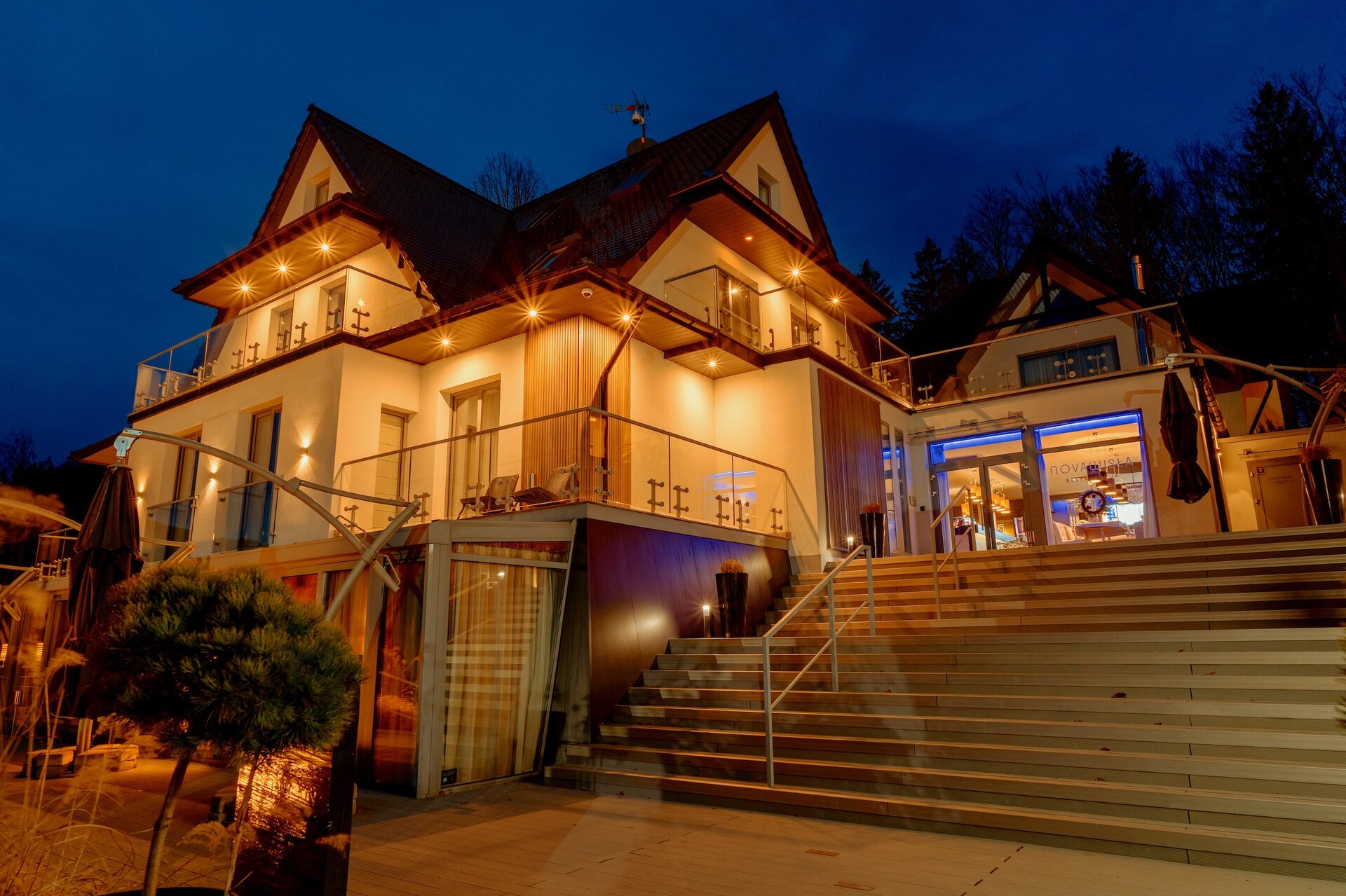 Item62, Link to Larger Image, budynek ze schodami i światłem nocą