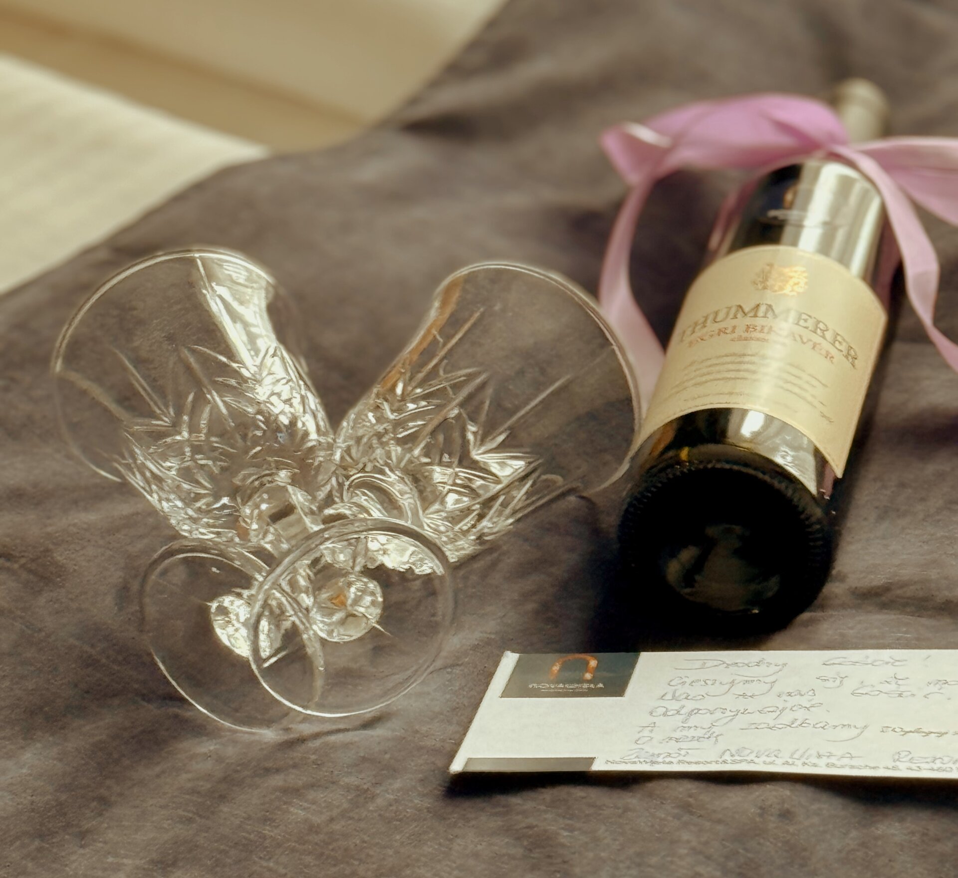 Item80, Link to Larger Image, łóżko z butelką wina i kieliszkiem