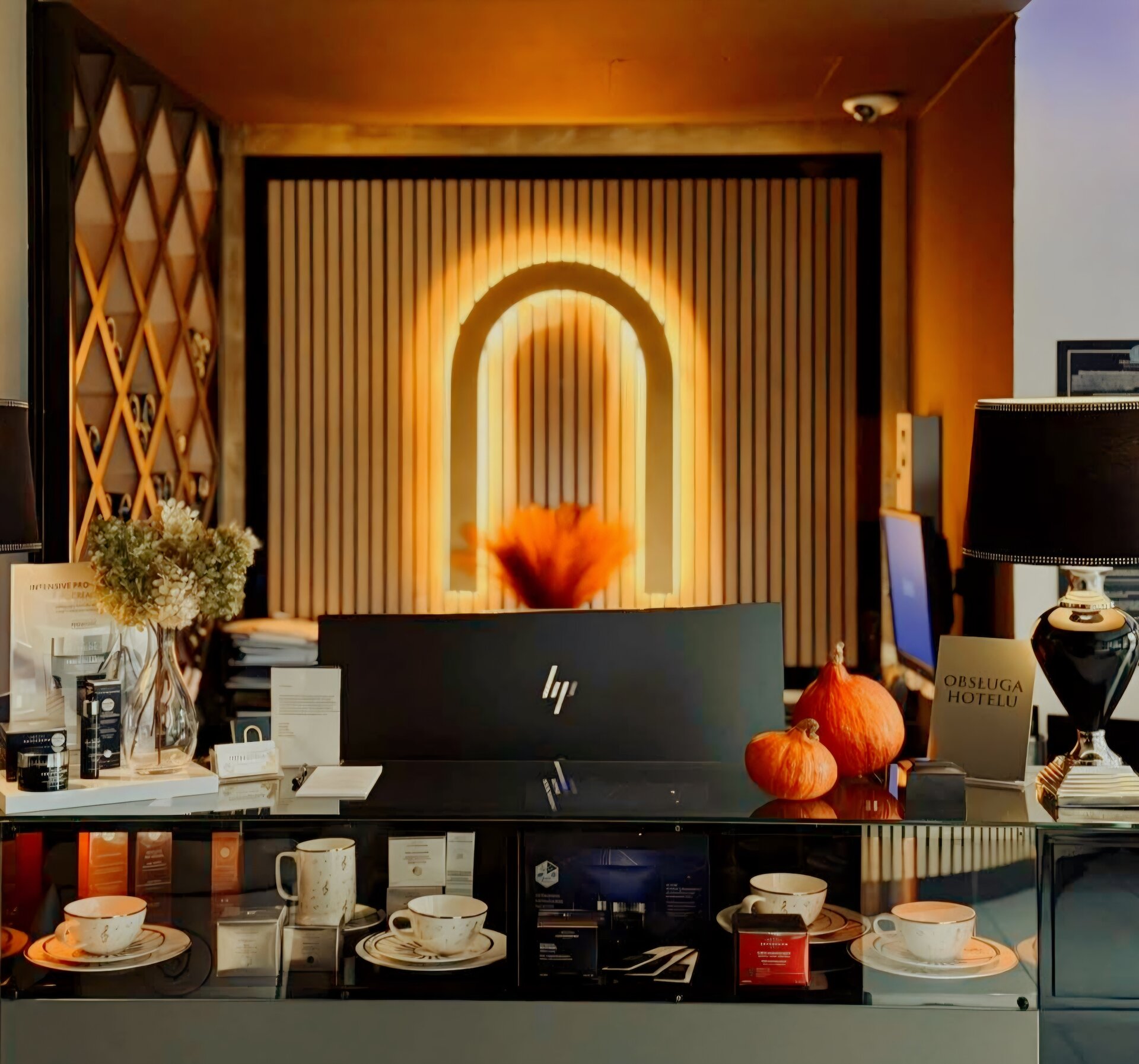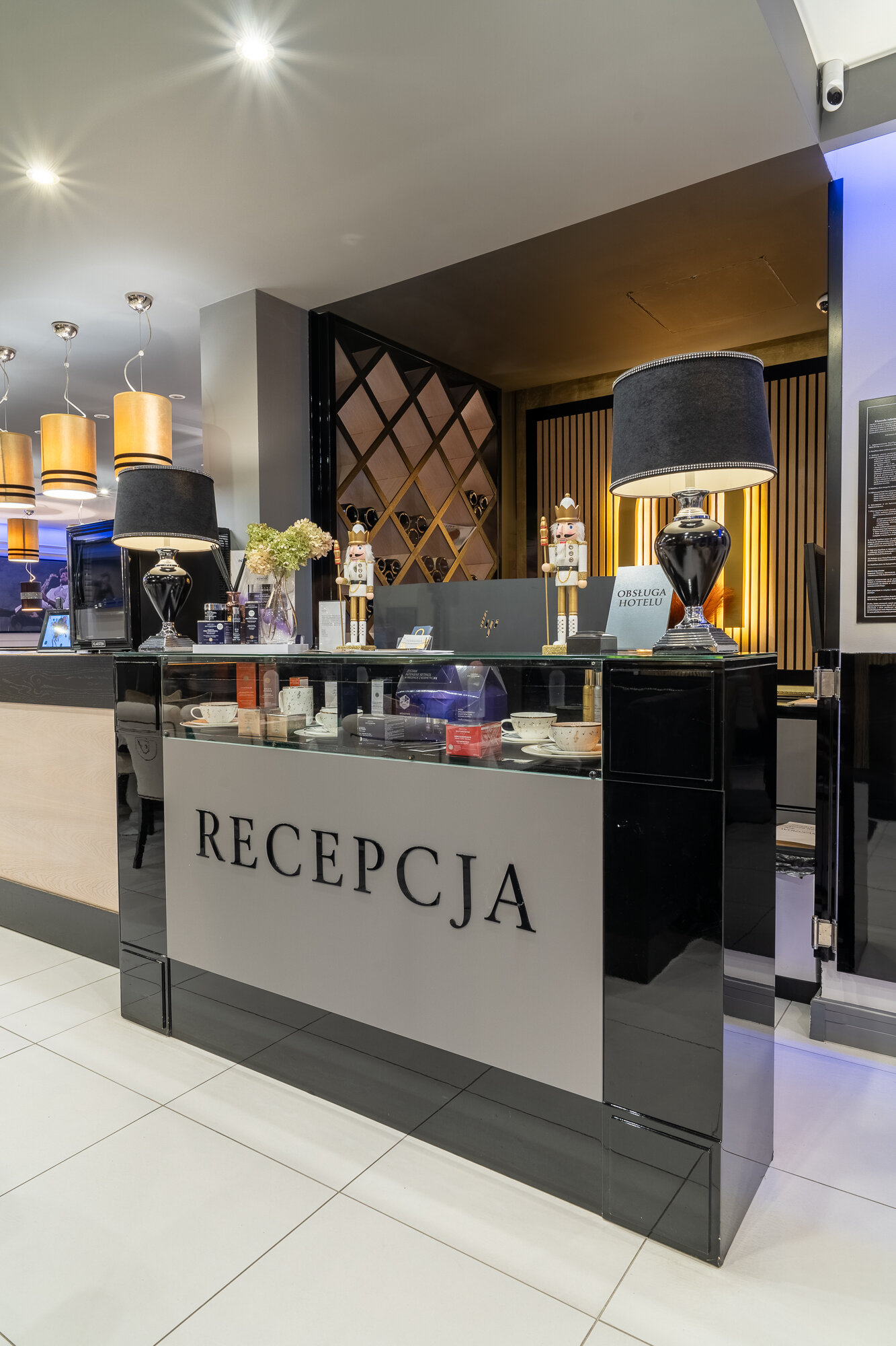 Item99, Link to Larger Image, czarno-białe biurko recepcyjne z lampami