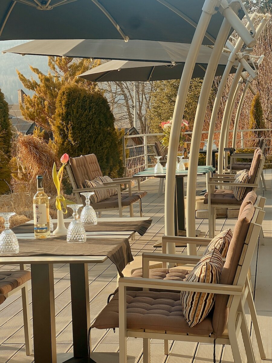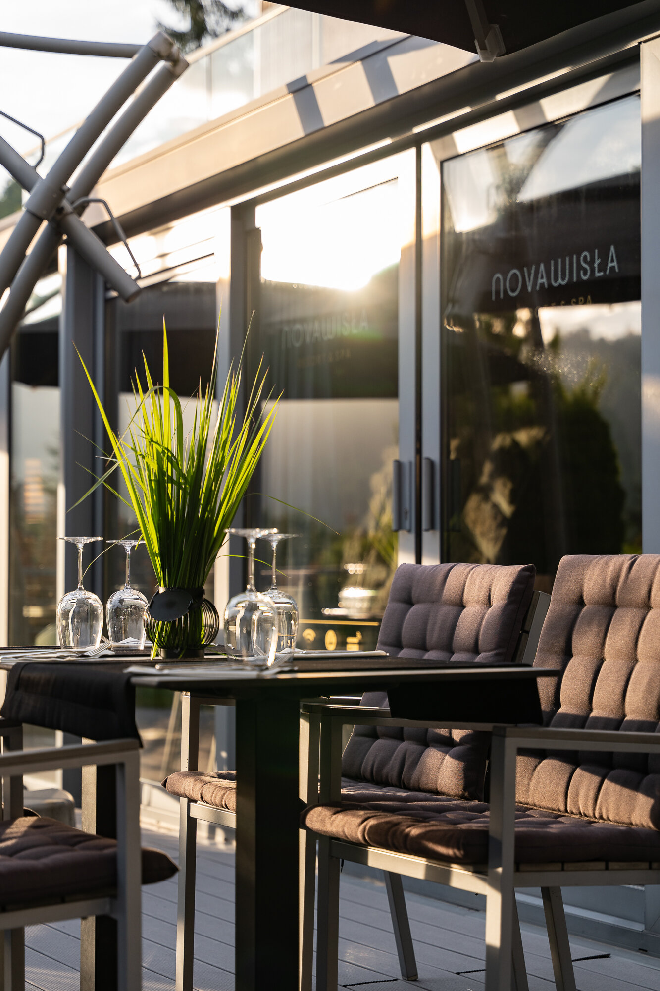 Item5, Link to Larger Image, krzesła na tarasie ze stołem i wazonem z kwiatami