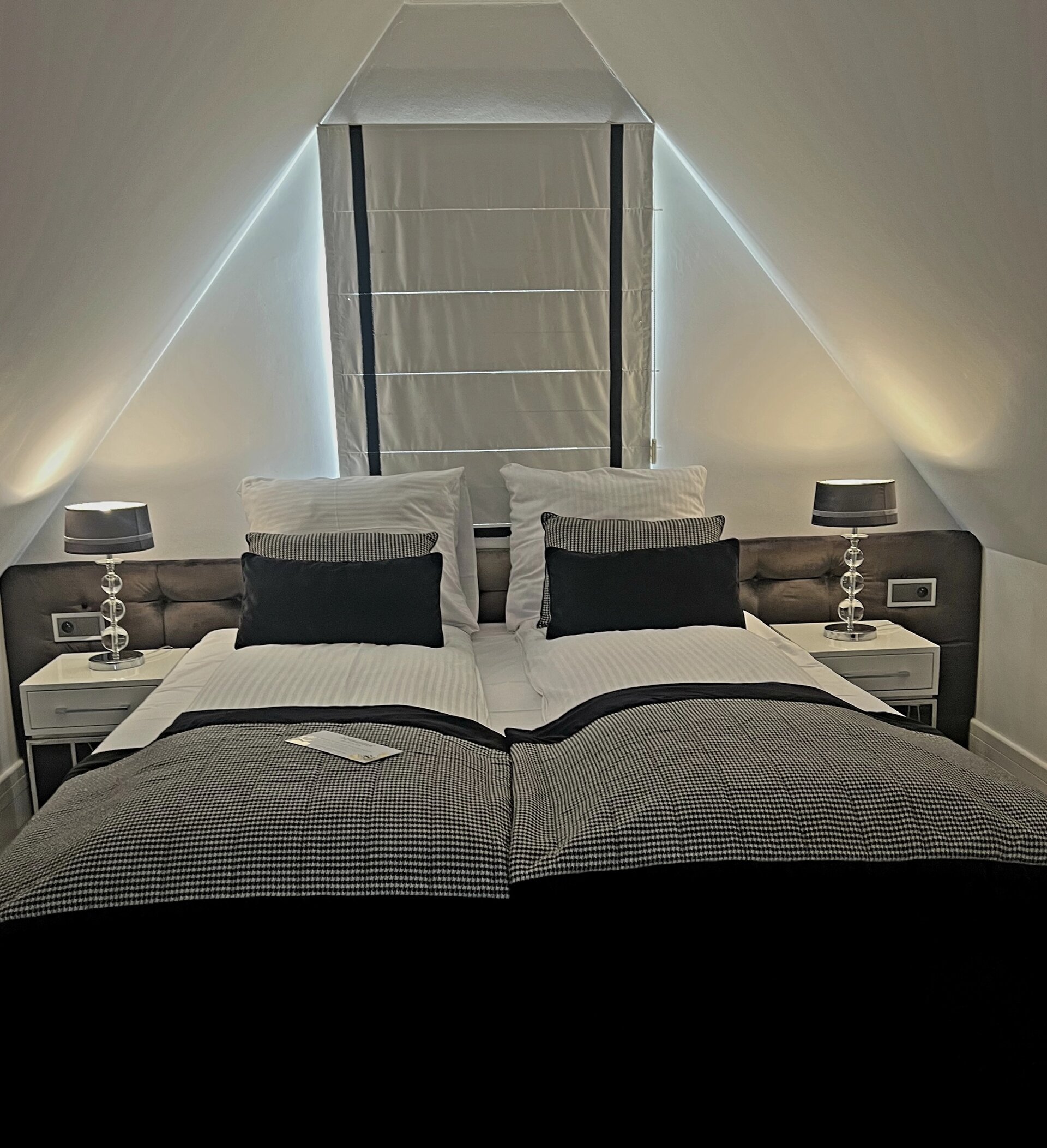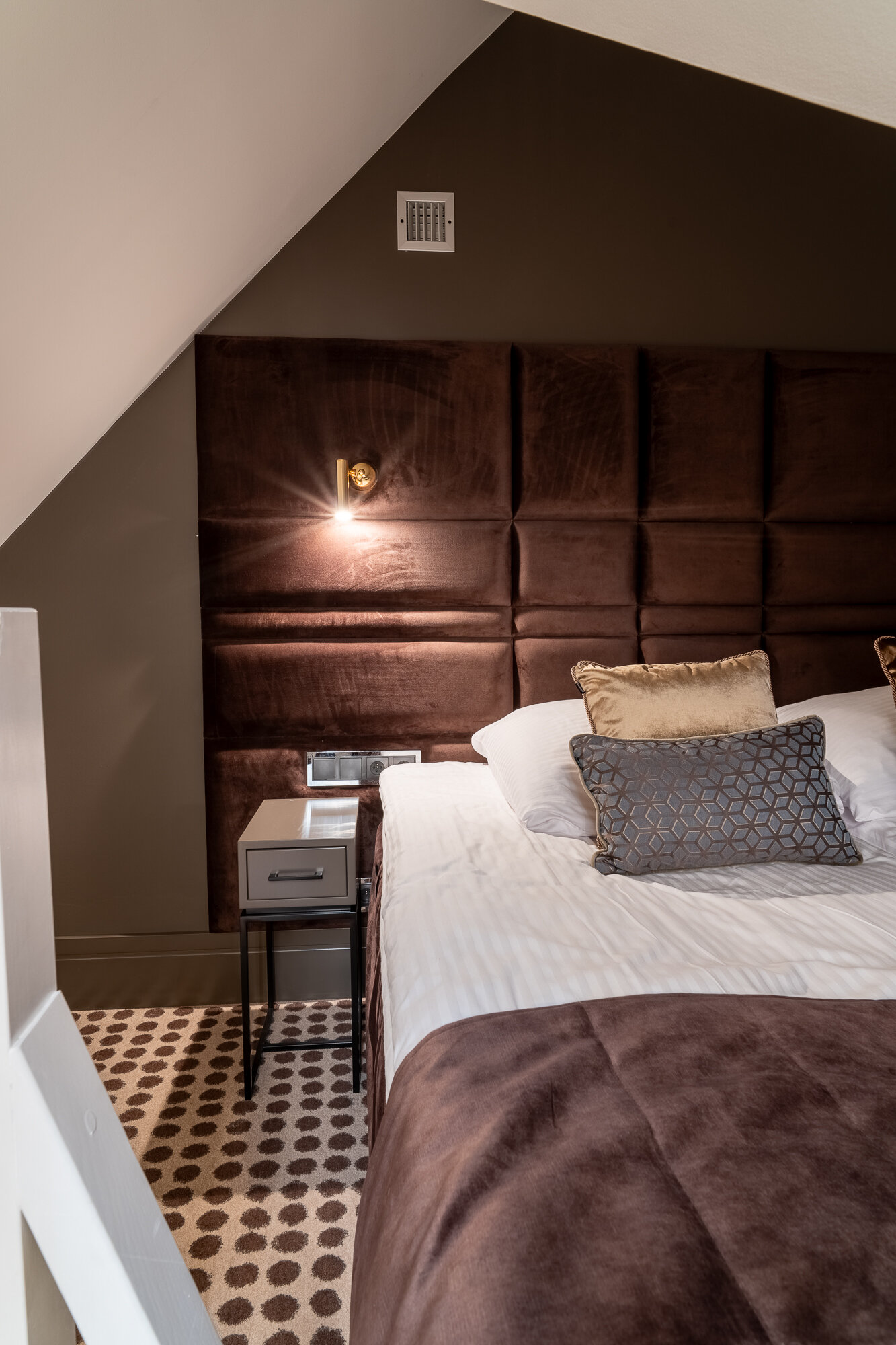 Item95, Link to Larger Image, łóżko z poduszkami i lampką na ścianie