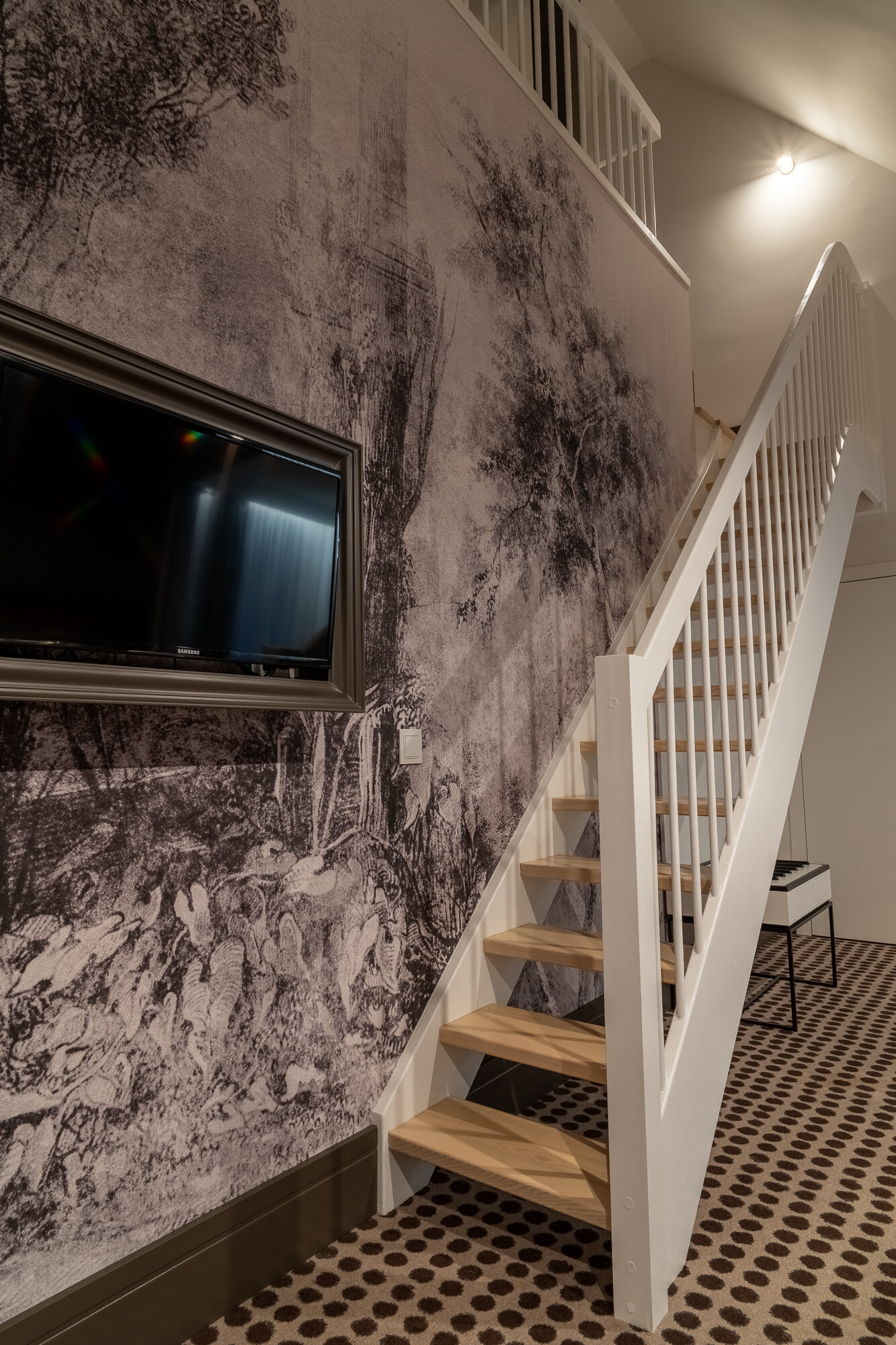 Item97, Link to Larger Image, Schody z telewizorem na ścianie