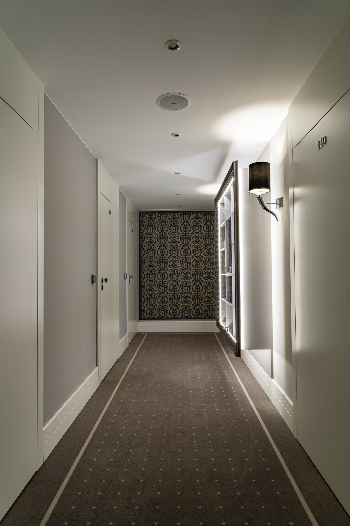 Item104, Link to Larger Image, Korytarz z białymi szafkami i tapetą