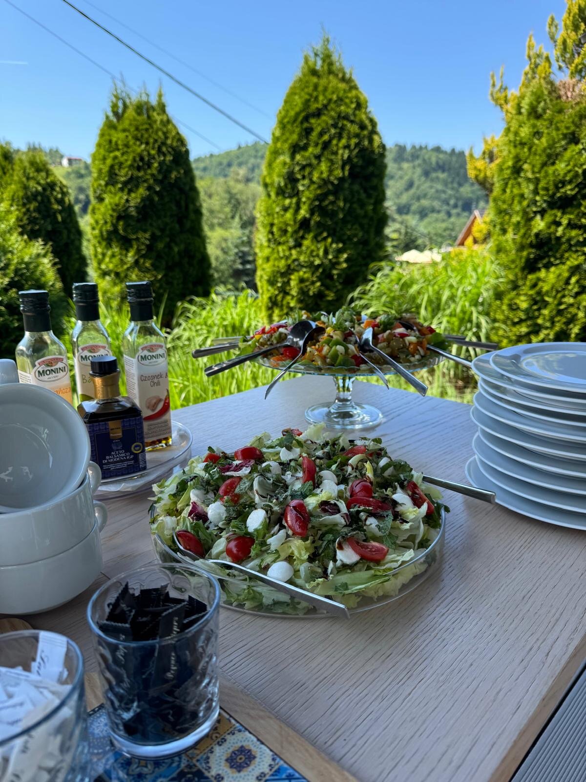 Item6, Link to Larger Image, stół z talerzami i sałatką